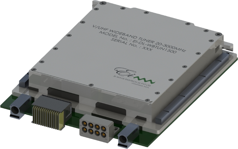 VHF/UHF RF FrontEnd 20-3000MHz VME Module intended for the monitoring / Search receiver applications.VHF/UHF FrontEnd receives signals from 20 to 3000MHz band and generates IF signals using super hetero-dyne concept.